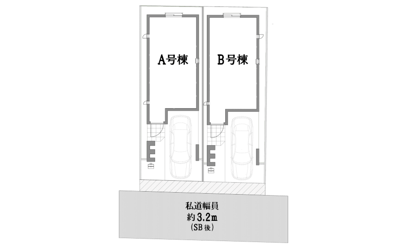 ■道路幅員 南側-私道 約3.2m ※SB後
