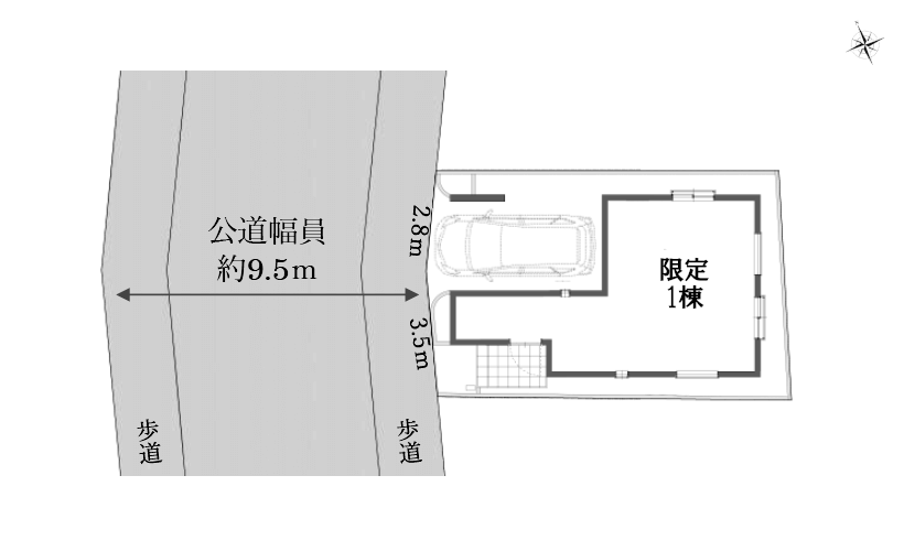 ■道路幅員 西側-公道 約9.5m